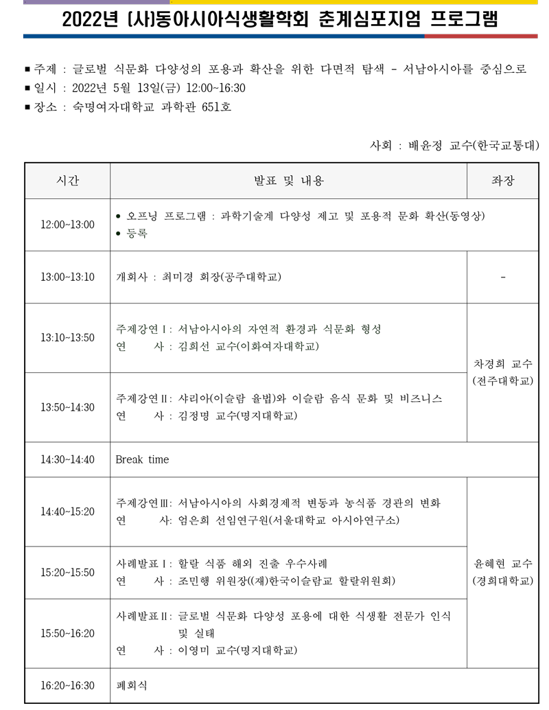 2022년 (사)동아시아식생활학회 춘계심포지엄 프로그램