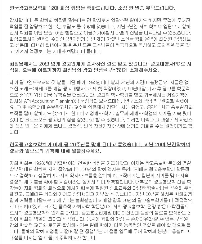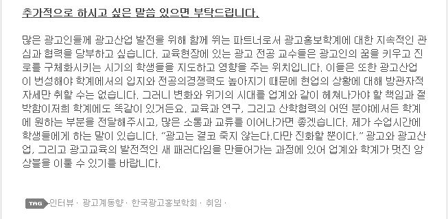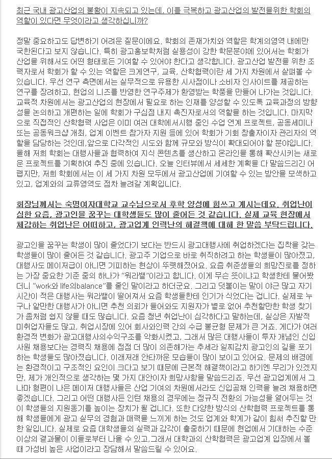 <광고계동향> 한규훈 회장 인터뷰 기사