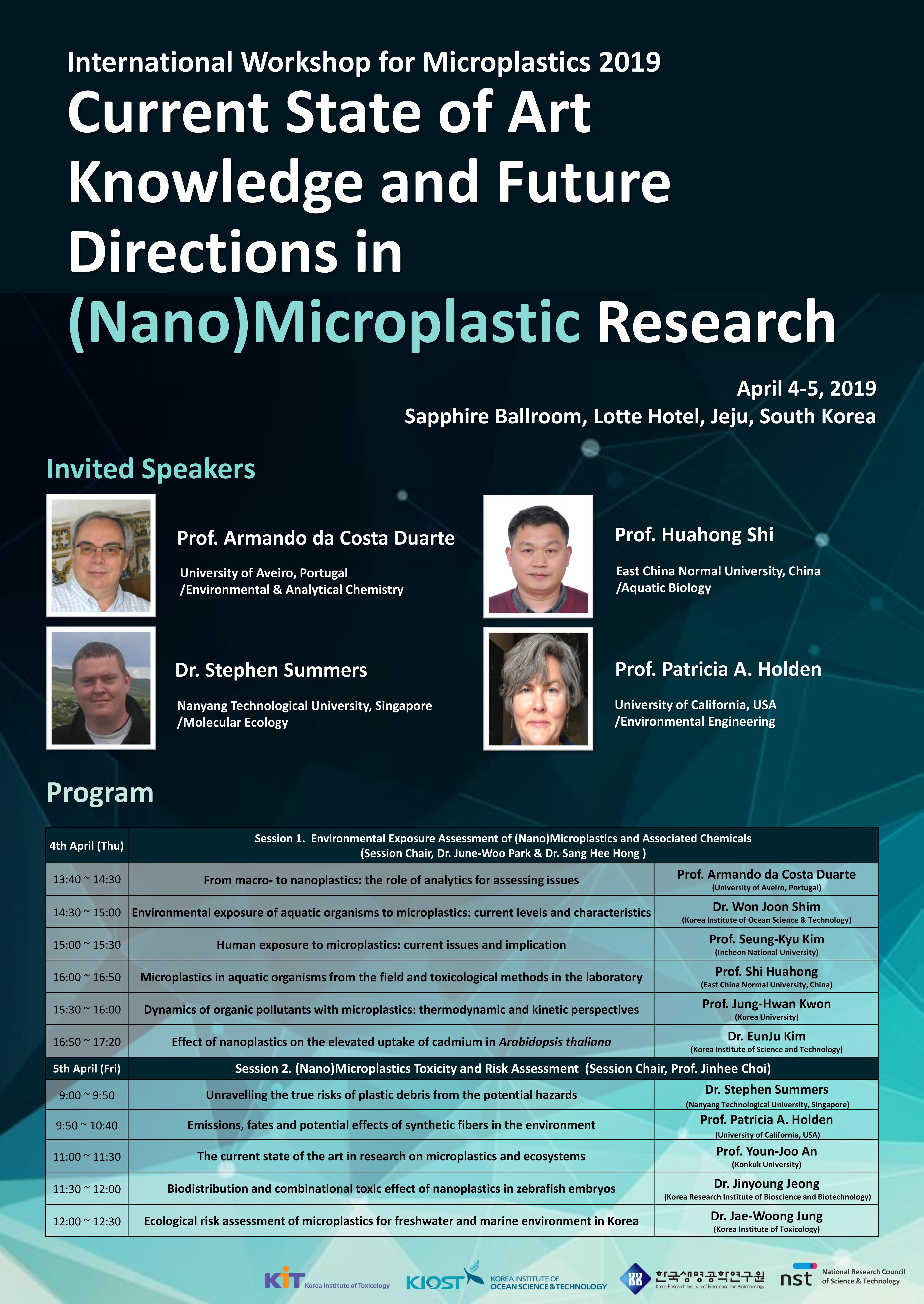 이에 본 융합클러스터는 국내외 미세플라스틱 연구자를 초대하여 「International Workshop for Microplastics 2019: Current State of Art Knowledge and Future Directions in (Nano)Microplastic Research」를 개최하고자 합니다. 이를 통해 최신 연구동향 및 성과를 공유함으로써 직면한 미세플라스틱 문제의 심각성과 이에 대처하는 방안을 살펴보고, 전문가 토론을 통해 향후 필요한 기술적, 과학적 해결방안을 모색하고자 하오니 많은 관심과 참석을 부탁드립니다. 감사합니다.