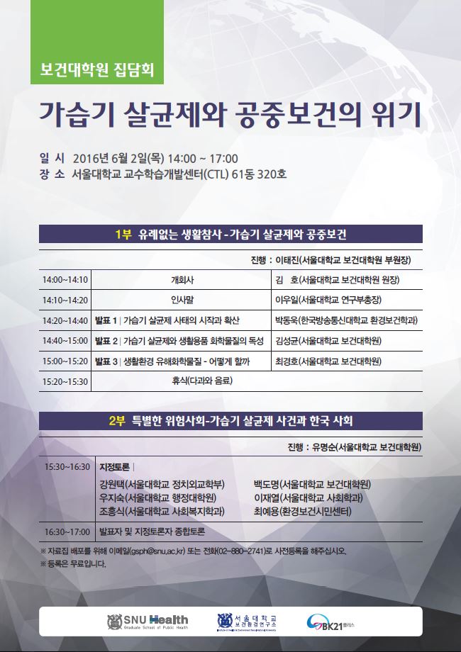 안녕하세요. 서울대학교 보건대학원입니다.