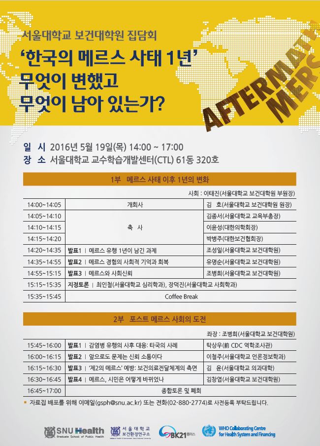[서울대보건대학원]한국의 메르스사태 1년 무엇이 변했고 무엇이 남아있는가?